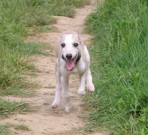 - le rappel: pour partir en promenade l'esprit serein, il faut que votre whippet revienne quand vous l'appelez. Commencez dès le plus jeune âge. Tous les jeunes chiots ont tendance à nous suivre. Eloignez-vous de lui puis appelez-le en vous accroupissant. Dès qu'il revient, félicitez-le. Si un jour, il ne revient pas quand vous l'appelez, ne courez pas après lui, il n'ira que plus loin. Au contraire, faites demi-tour et il vous suivra! Quand il reviendra enfin, n'oubliez pas de le féliciter!